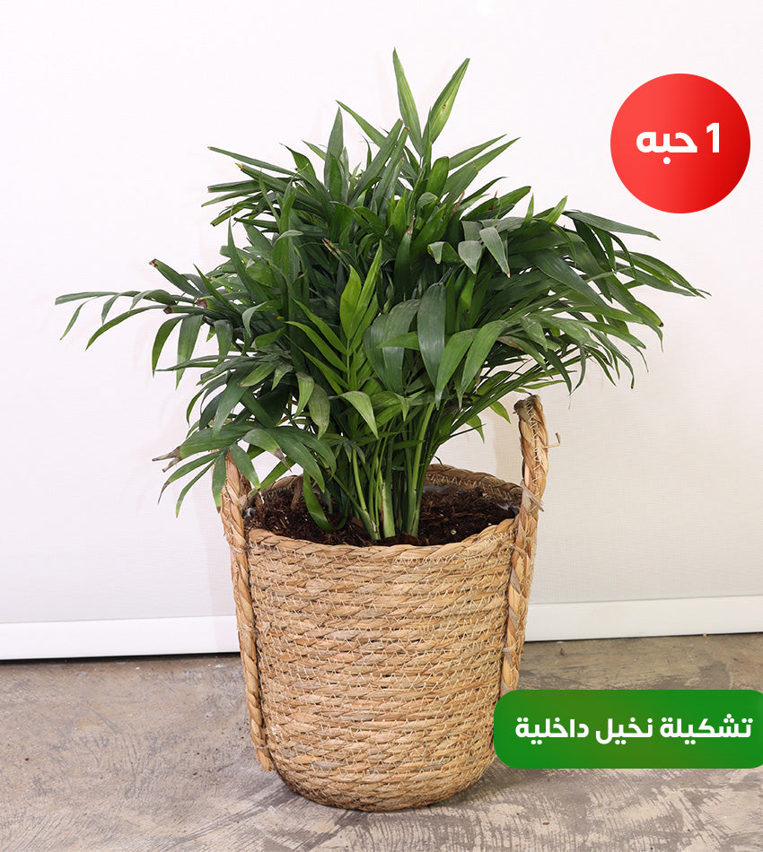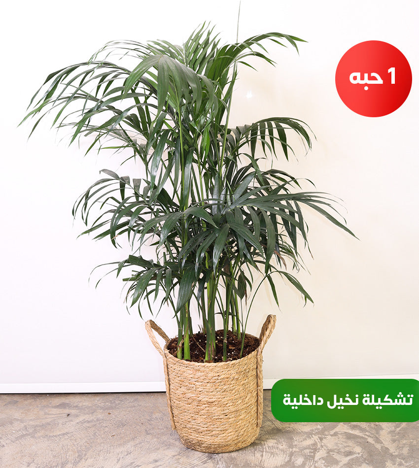 نخيل أريكا عملاق ونخيل أريكا كبير – شامادوريا متوسط وصغير – مع رشاش ماء كبير