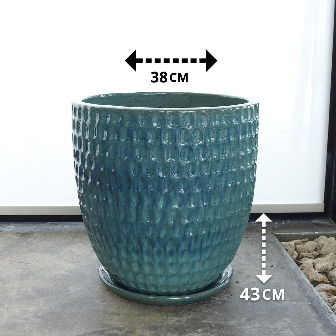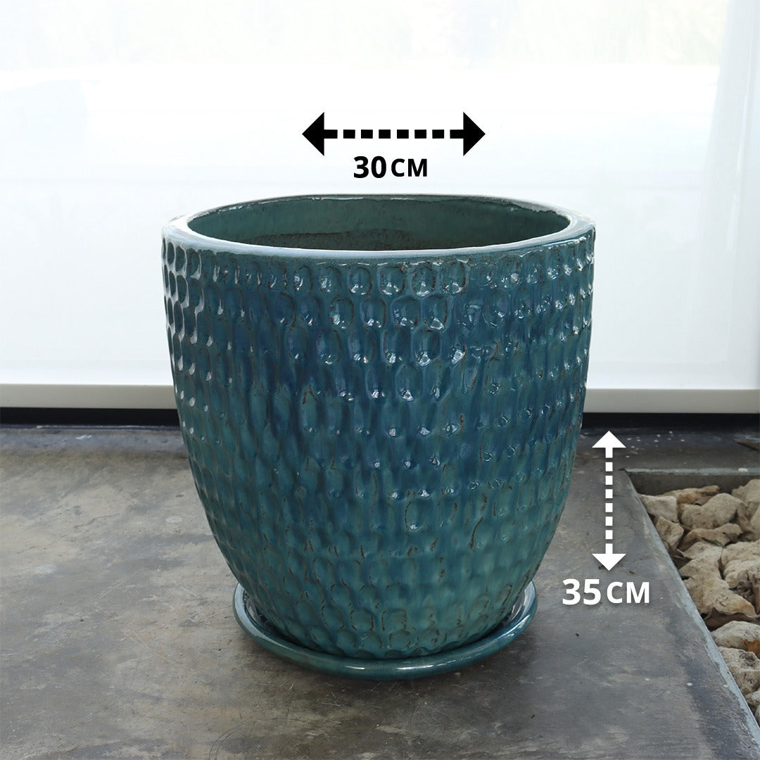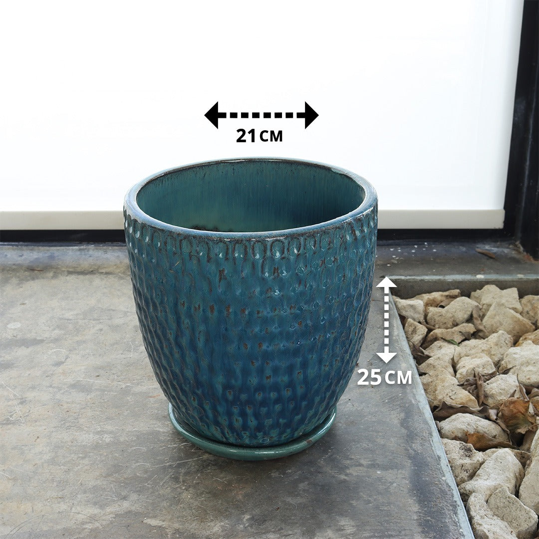Ceramic Pot with Drip Tray (Sky Blue)