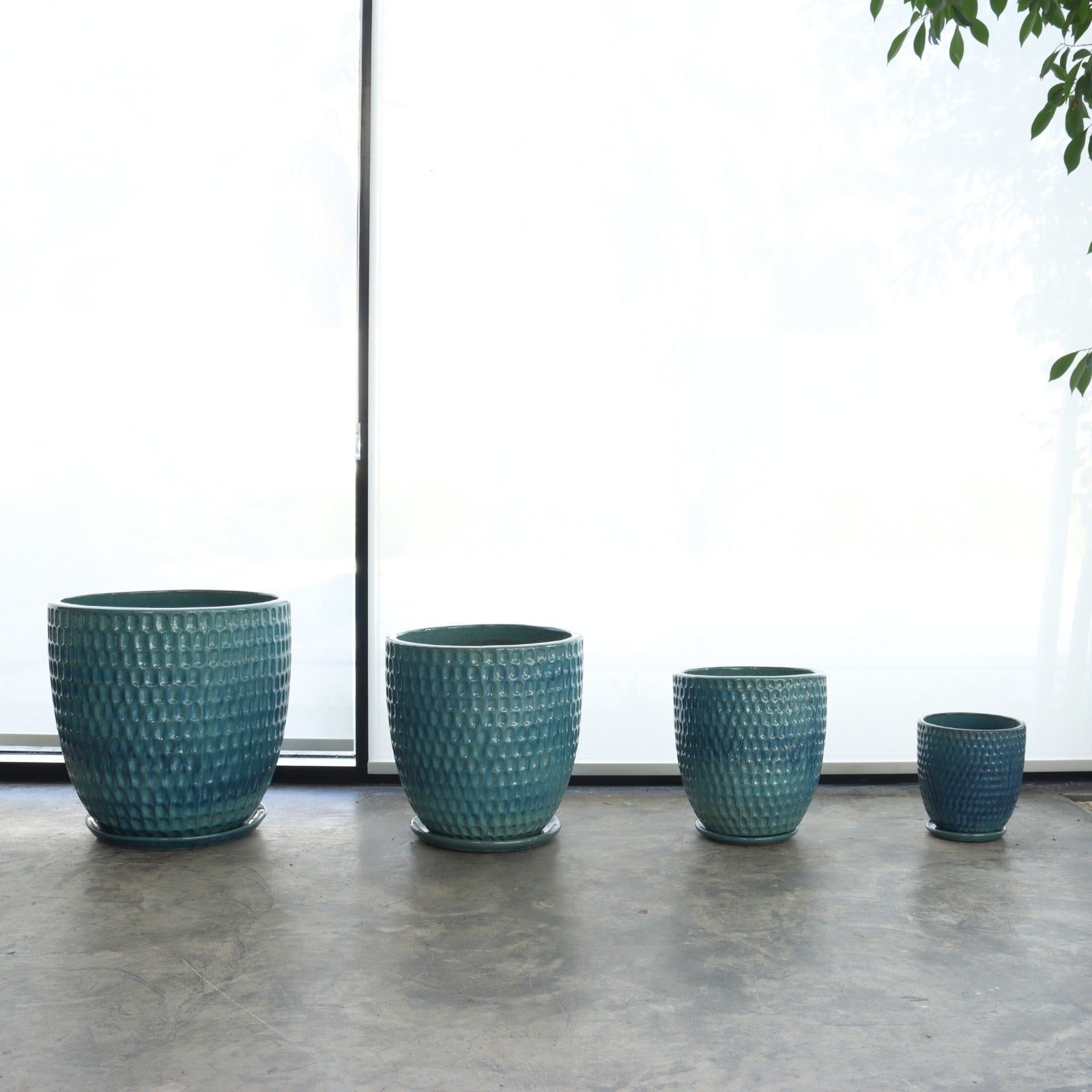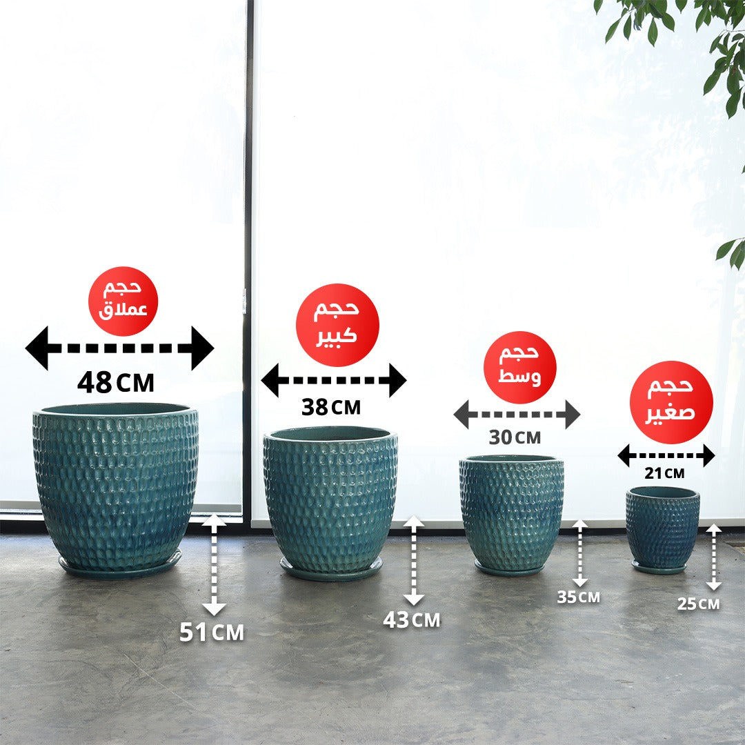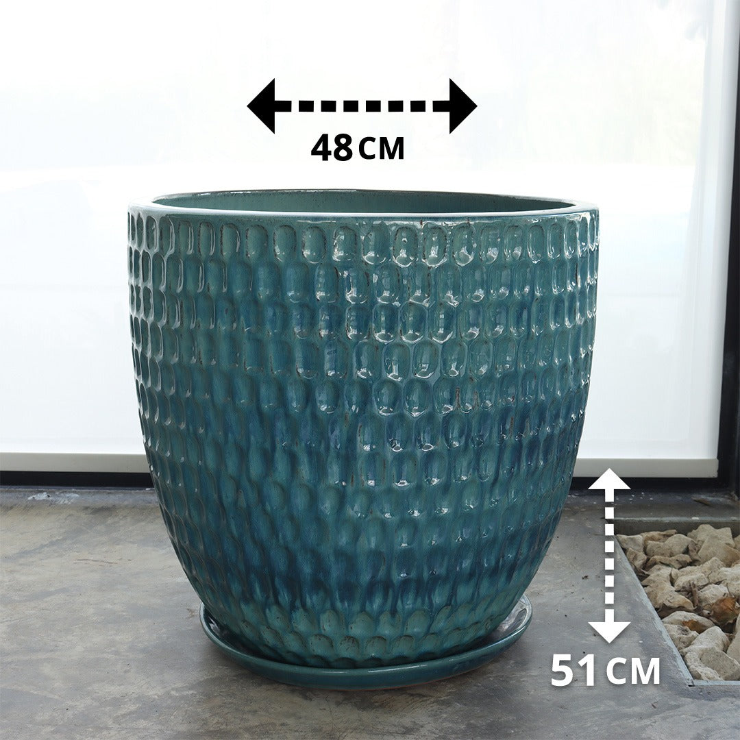 Ceramic Pot with Drip Tray (Sky Blue)