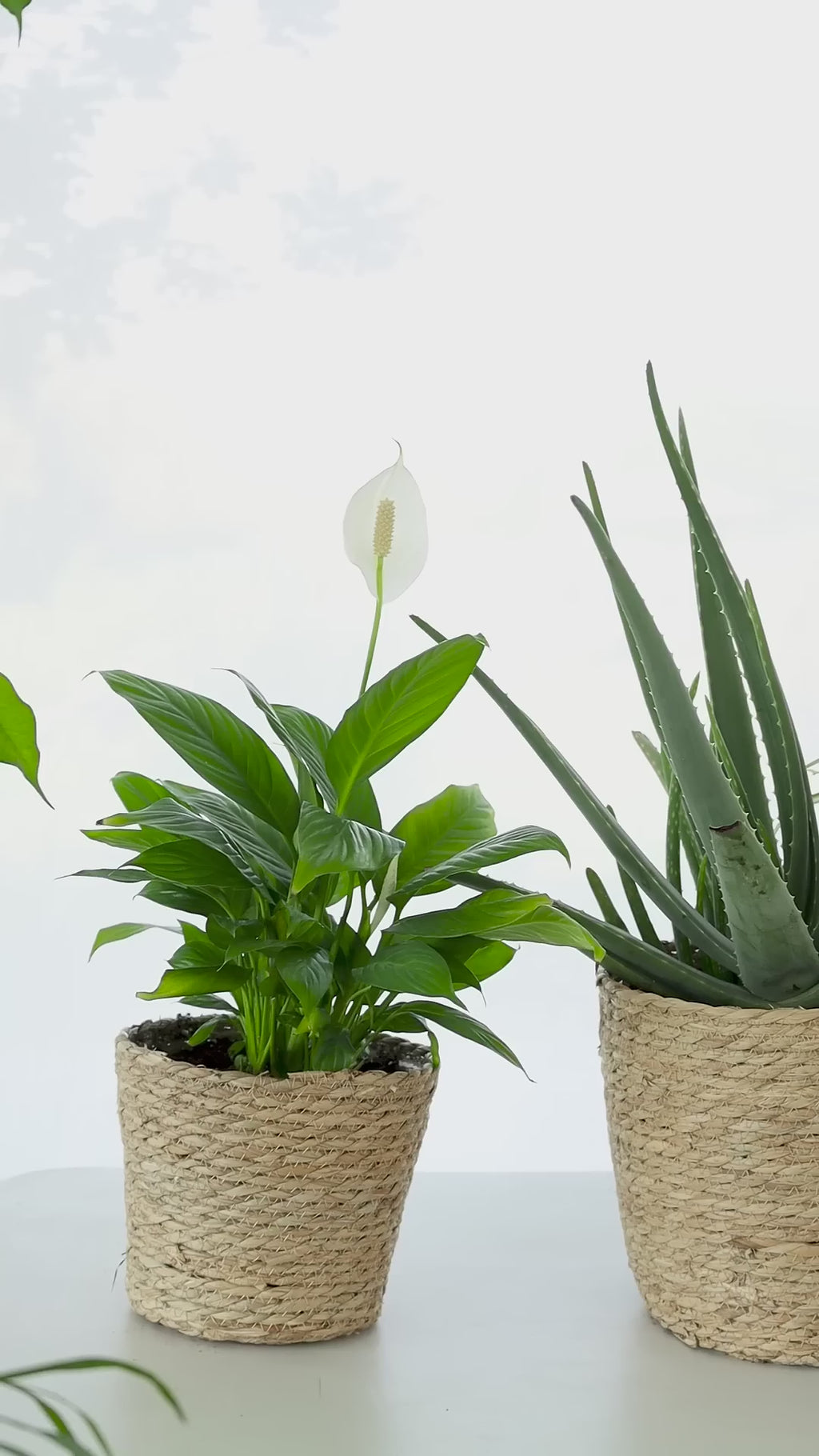 Aloe Vera – Spider Plant – Peace Lily – Snake Plant in woven basket pots