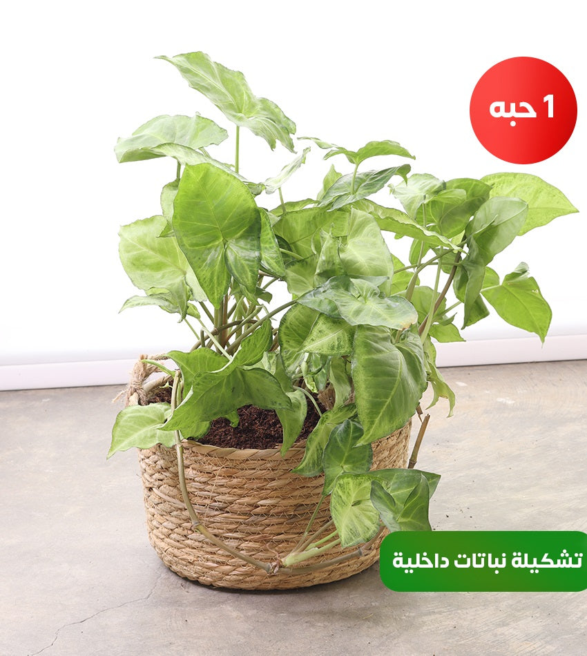 (1) بوثوس (1) سينغونيوم (1) سبايدر بلانت (تشكيلة نباتات داخلية معلّقة بحوض القش)